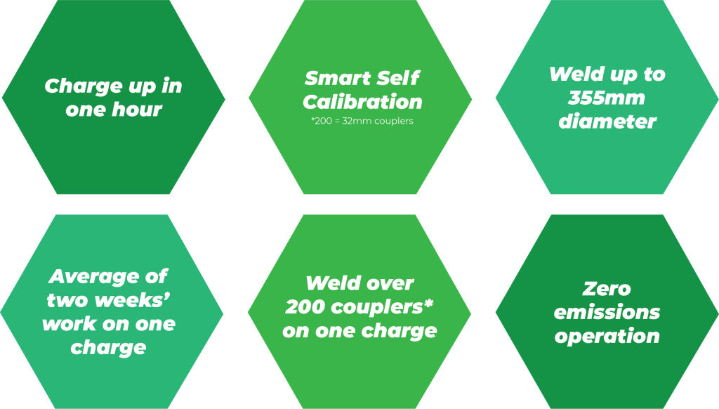 With the EFuze I-ACT, you can weld over 200 couplers* silently and completely CO2-free.